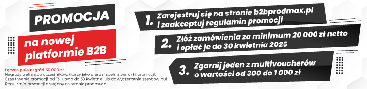 PRODMAX SP. z o.o. jako administrator danych osobowych przetwarza Twoje dane osobowe, stosując pliki cookie w celu zapewnienia prawidłowego funkcjonowania serwisu. Może również razem z partnerami, po wyrażeniu przez Ciebie zgody, wykorzystywać pliki cookie w celach analitycznych i marketingowych, w szczególności dopasowania treści reklamowych do Twoich preferencji. Więcej informacji o korzystaniu z plików cookie oraz o przetwarzaniu danych osobowych, w tym o przysługujących Ci uprawnieniach znajdziesz w naszej .